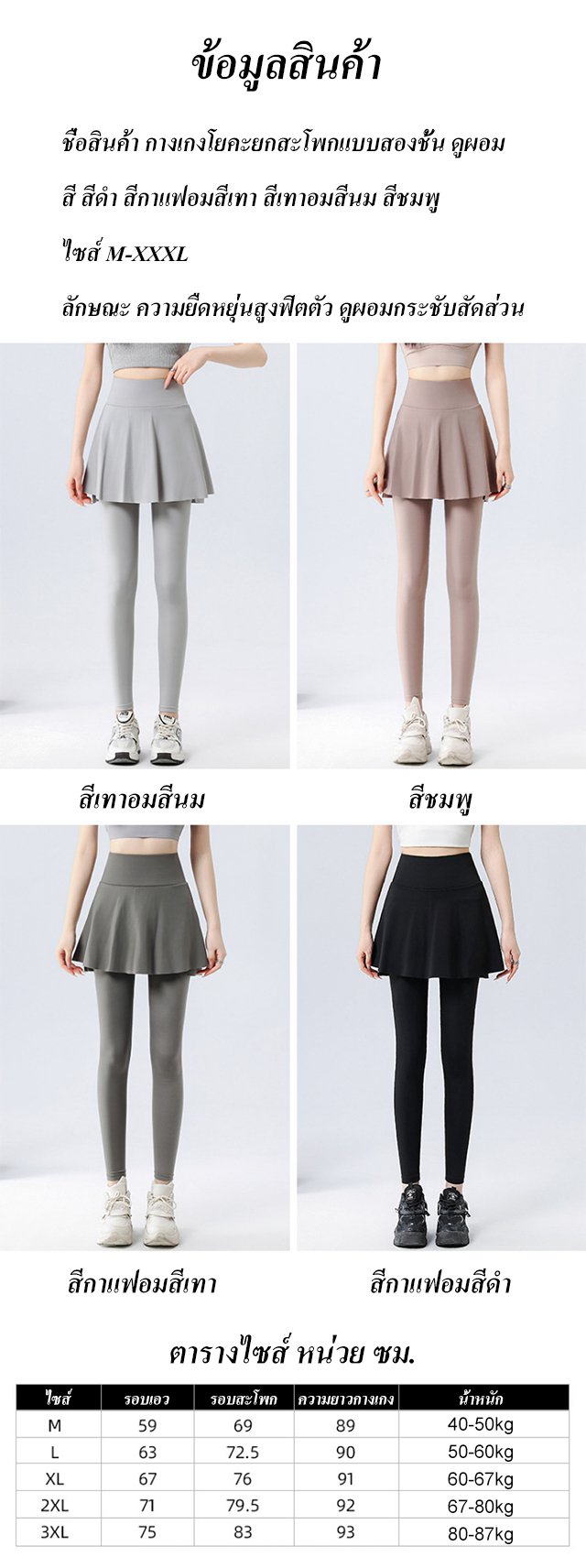 กางเกงโยคะยกสะโพกแบบสองชั้น ดูผอม